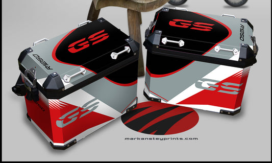 BMW R1250 GS (2023) Vario Pannier Decals - Rallye Red, Blue and Black Decals